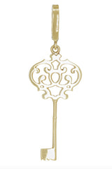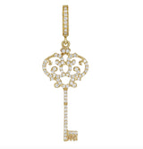 The openwork key pendant is so cute, set throughout with diamonds suspended by a hinged diamond set bail. Can be ordered in any color gold. Typically takes 7-8 weeks to ship.