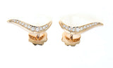These stunning earrings with a slight wave motif have a line of pavé-set diamonds in 18k yellow gold. They were designed to sit on the ear so many different ways, up the ear, hanging down, or pointing up! Can be ordered in white and rose gold as well.
