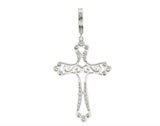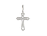 The open work cross is such a "stand out" piece of jewelry. This cross is perfect to wear everyday and also looks beautiful on a diamond dot chain or an RFG pendant holder. It has a filigree design and is accented with round diamonds. It also comes with a hinged bail (opens and closes to wear on several different chains).