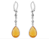 18K White Gold and Orange Opal Diamond Drop Earrings