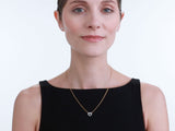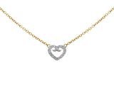 A delicate and precious pendant of open heart design, set with a row of round diamonds suspended from a fine link 18k yellow gold chain . Can be worn alone for an understated look or used to hold a detachable pendant. This necklace will become your favorite jewelry piece. We are now sold out of our small heart necklace, please contact our office to order. This necklace can be special ordered in any color gold and any length chain. Special Orders must be paid in advance and no returns please. Email us at: rhonda@rhondafabergreen.com