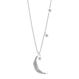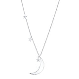 18K White Gold and Fancy Raw Diamond Moon and 3 Star Necklace