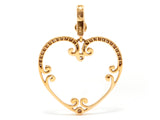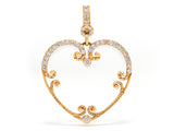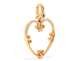 A more simple version of the "Filigreen Heart", this cute 18K rose gold diamond heart has two bezel set diamonds, one at the top and one at the bottom and pave diamonds around the top only. The bale is detachable as well and also has pave diamonds on it.
