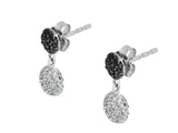 A pair of versatile 18K pavé-set diamond dot earrings.  The top dot is set with beautiful black diamonds and has a sparkling white diamond dot dangling from it.  The detail of this dangling dot is phenomenal, it has white diamonds on the  front and the back is set with black diamonds.