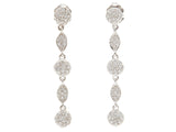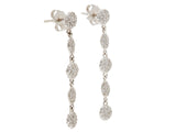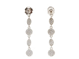 These stunningly unique and sparkly 18K white gold pave diamond dot earrings sparkle no matter how they move, because they have diamonds on the front and diamonds on the back. Alternating 3 round and 2 ovals, these earrings dangle beautifully and the round pieces are the exact match to our "Diamondot" necklaces. The top round pave diamond piece has the post in back and a butterfly back.