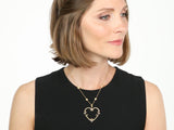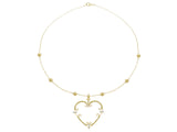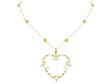 An RFG signature heart-shaped pendant pavé-set with yellow sapphires, each cardinal point with a diamond trio accent and a hinged pavé-set yellow sapphire bail suspended from a fine link necklace with six yellow sapphire dot accents. Dot necklace can be worn without the pendant for a more understated look.